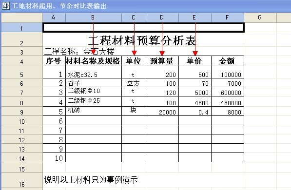 注:以上只是演示了導(dǎo)入預(yù)算的全過(guò)程,在實(shí)踐當(dāng)中還是建議用戶只將大材料用手工【添加】的方式建立預(yù)算單,因?yàn)榱阈堑牟牧厦Q多而且繁雜,如果也要將零星材料從預(yù)算中導(dǎo)入、再做一一對(duì)應(yīng),這樣勢(shì)必給用戶帶來(lái)很大的工作量。況且零星材料也不好準(zhǔn)確估算出實(shí)際用量。