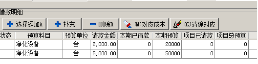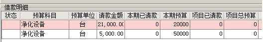 我們選擇其中兩項(xiàng),高效過(guò)濾器和移動(dòng)式消毒車(chē),其中高效過(guò)濾器預(yù)算金額為20000元、移動(dòng)式消毒車(chē)預(yù)算費(fèi)用為50000元,當(dāng)我們的請(qǐng)款金額小于預(yù)算金額時(shí)候,顯示為正常的白色。