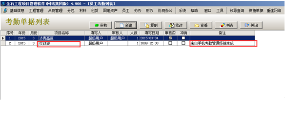 考勤單據生成之后可進入到系統中查看到來自“手機考勤終端”生成的考勤單據,如圖: