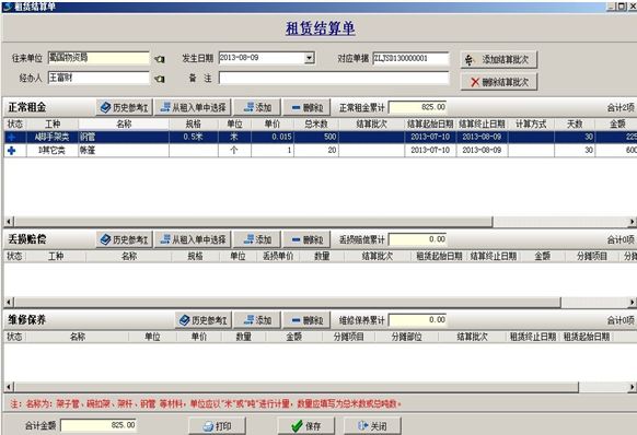 3.【租賃材料成本】,一般用于統計項目工地向租賃站租賃的各種材料(鋼管、腳手架、模板等)所產生的成本,成本根據租賃結算單生成。