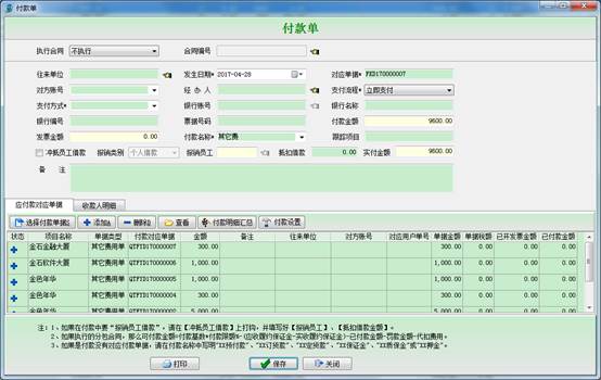 然后點(diǎn)擊付款,彈出付款申請(qǐng)單或付款單,如圖