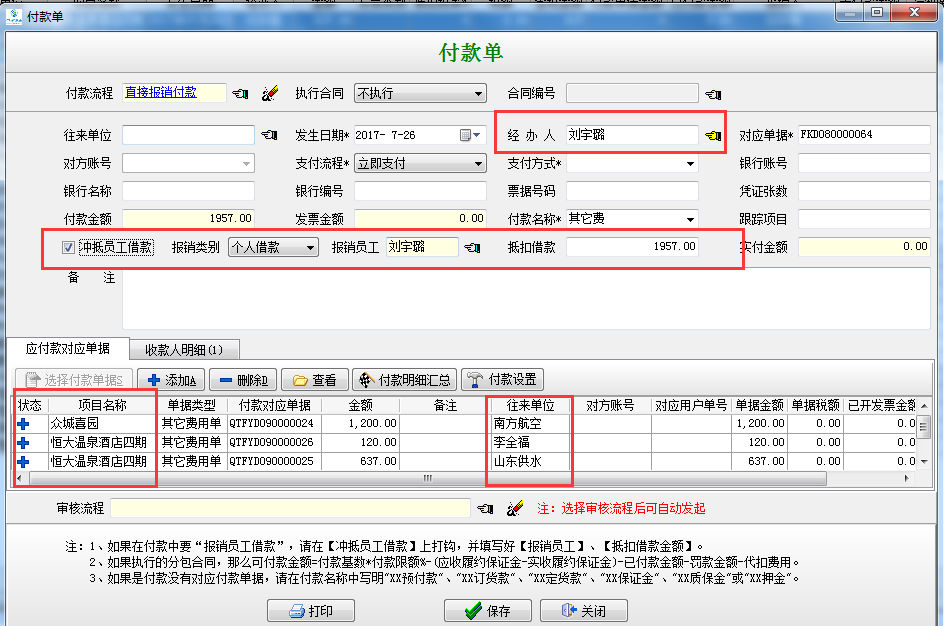 單據(jù)流程:?jiǎn)T工借款(如有員工借款)→采購入庫或其他費(fèi)用(財(cái)務(wù)審核)→出納付款