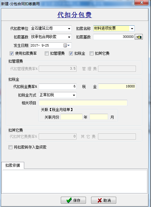 ①“分包合同”扣繳費用,扣管理費、扣銷項、進項稅