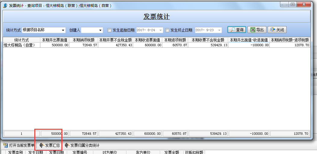 在“分包合同”內(nèi)發(fā)票匯總查詢(查詢聯(lián)營單位進項和銷項)
