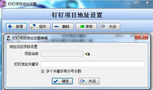 點(diǎn)擊新增選擇對應(yīng)的項目名稱和填寫對應(yīng)的釘釘?shù)刂逢P(guān)鍵字。如果有多個關(guān)鍵字用分號分開。