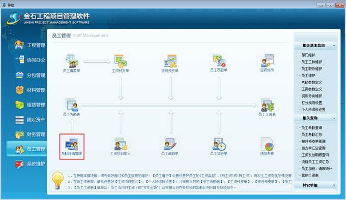 以上操作可參見教學(xué)視頻“金石工程項目管理軟件考勤管理 ”。
