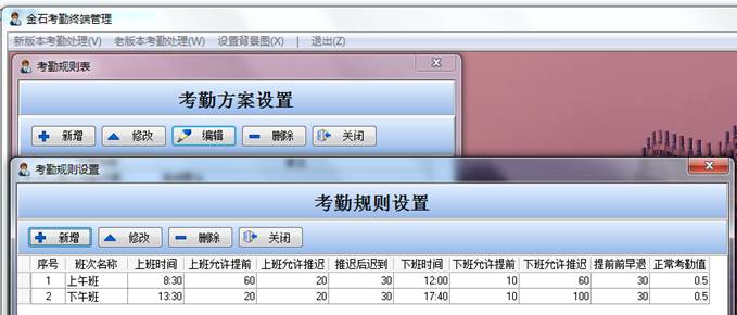 點(diǎn)擊新增,增加新的考勤方案,然后點(diǎn)擊修改,設(shè)置方案中各個參數(shù)。