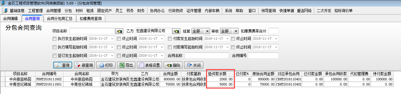 在【分包合同】-【合同查詢】處查詢,如圖: