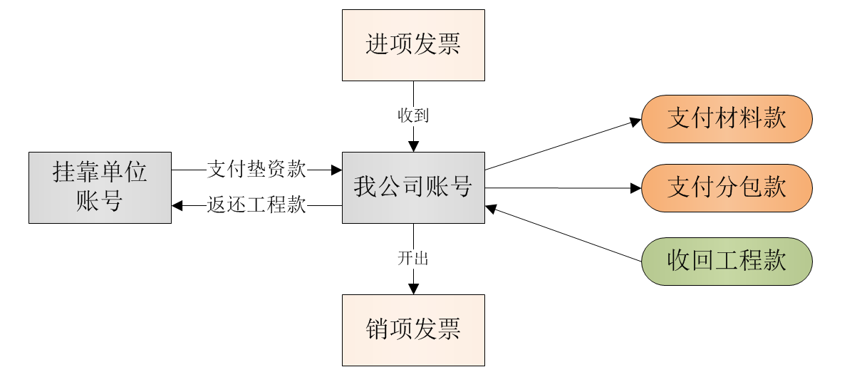 注:但對掛靠單位的流水是沒有發票,財務人員可在財務軟件中做“其他應收款”、“其它應付款”或“工程借款”、“工程還款”的會計憑證來倒賬。