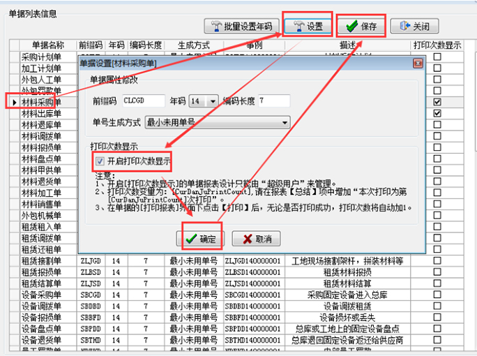表格打印次數顯示功能是針對部分工地人員造價,一張單據多次報賬的情況制作。