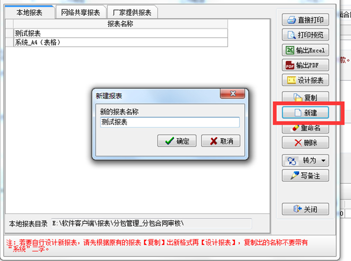 2. 點擊【新建】,輸入報表的名字后確定,再點擊【設計報表】