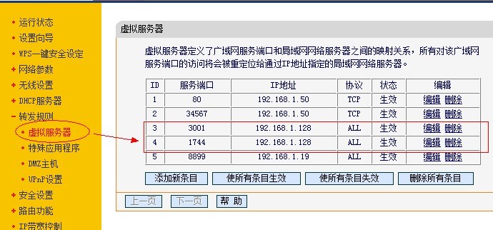 1. 靜態ip接入的用戶,只需要在路由器中開放1744和3001兩個端口,