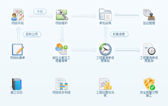 企業(yè)可以利用裝修工程項目管理軟件完善的項目管理體系,以預(yù)算為基線,控制項目成本、進展;項目質(zhì)量控制以合同為控制、工作量計量、控制資金支付;根據(jù)控制材料的采購招標,完成采購過程的陽光,優(yōu)化材料庫存管理,實現(xiàn)質(zhì)量和數(shù)量目標;采用預(yù)控制和后分析,有效控制經(jīng)營管理過程的風(fēng)險,滿足各種項目管理需求,降低成本,提高企業(yè)競爭力。