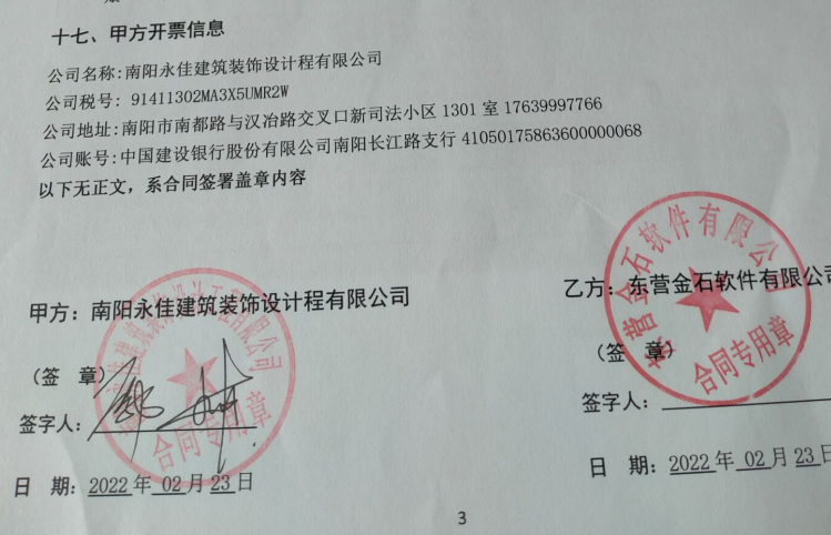 金石軟件簽約南陽永佳建筑裝飾設(shè)計工程有限公司