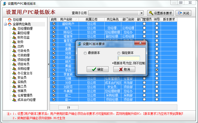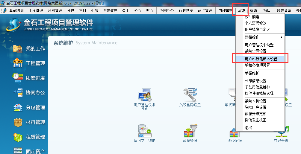 在使用金石工程項(xiàng)目管理軟件的過程中經(jīng)常會(huì)碰到有的同事升級(jí)了較新版本的新功能,其他同事還在使用老版本不能更好的體驗(yàn)金石軟件新功能,在6.35版本中我們對(duì)此進(jìn)行了限制,可要求所有用戶均升級(jí)最新版本或指定的版本,否則系統(tǒng)將將強(qiáng)制升級(jí),操作流程如下:
