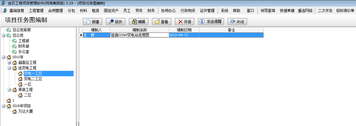 打開【工程管理】-【任務(wù)圖編制】如下圖