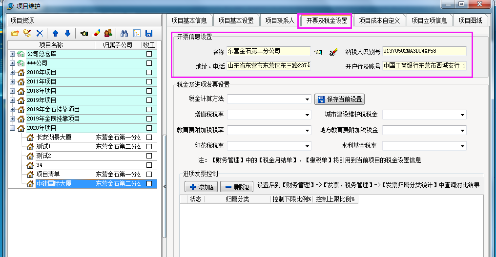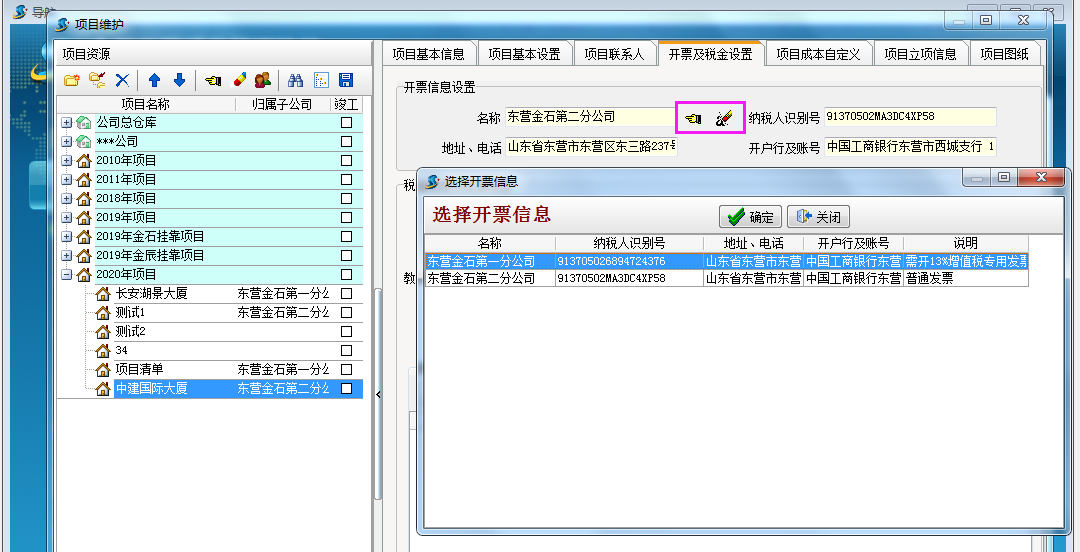 3、項目維護設置歸屬子公司后會自動帶入開票信息。