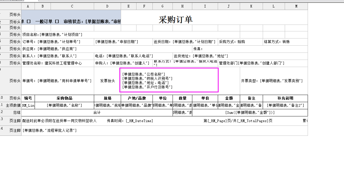 設置好項目開票信息,打印采購訂單時設置好對應報表,會自動顯示開票信息。