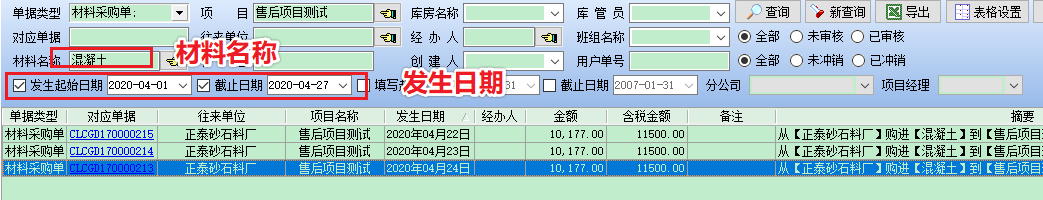 第一步,先通過篩選功能把要批量修改的材料篩選出來,注意發(fā)生日期