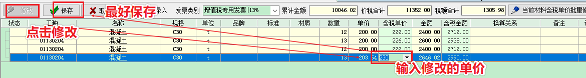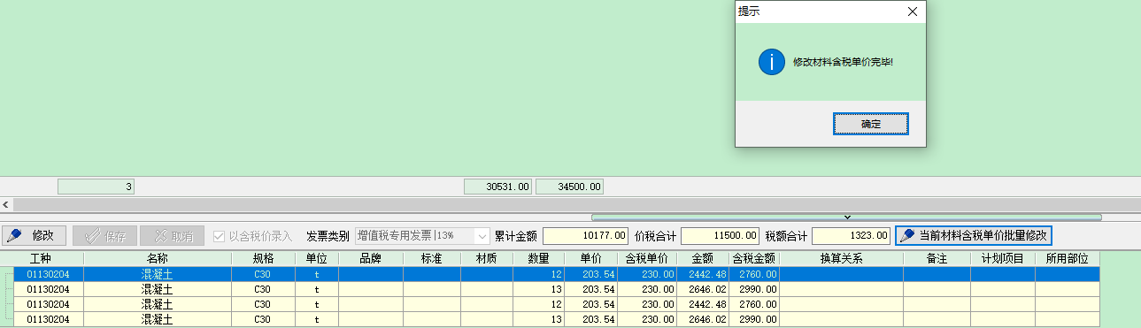 2 批量修改(適用于材料名稱規(guī)格單位品牌標(biāo)準(zhǔn)材質(zhì)完全一致的情況)