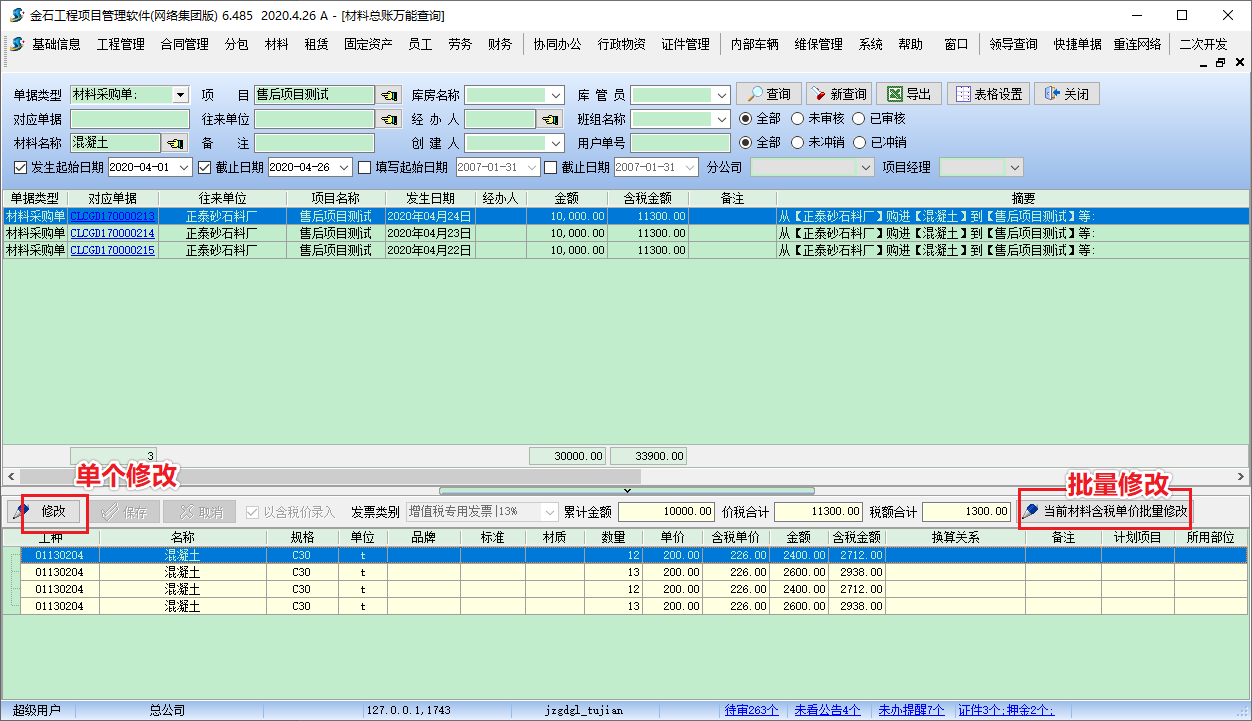 材料總賬萬能查詢(更改材料單價(jià))