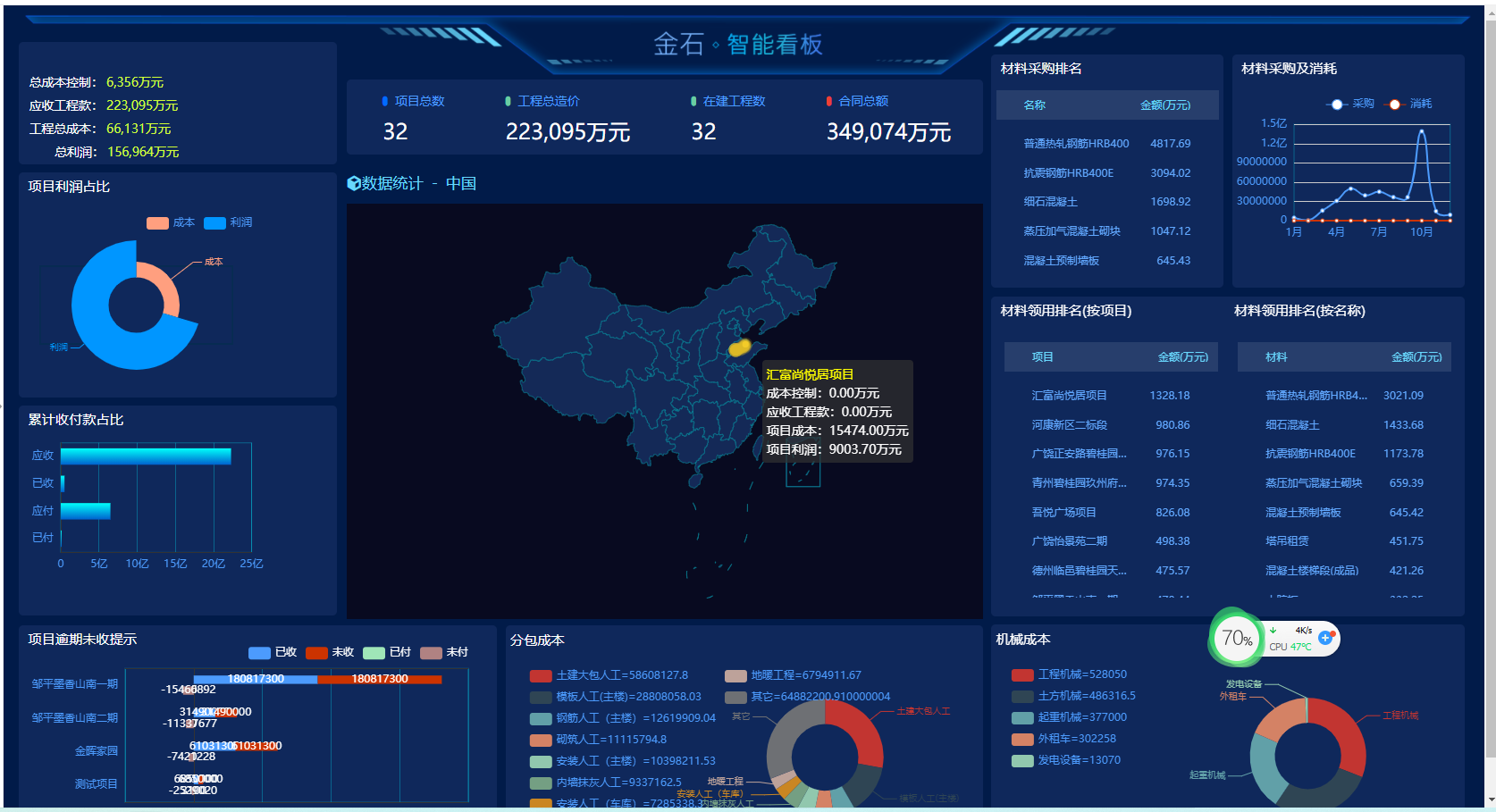 應(yīng)廣大客戶的建議反饋及市場調(diào)研結(jié)果,金石軟件增加項(xiàng)目智能看板功能 。