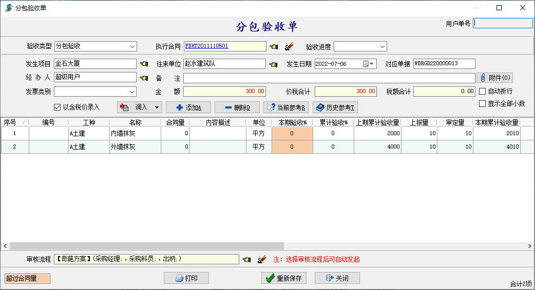 金石工程管理軟件新增單據(jù)表格樣式設(shè)置