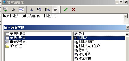 在彈出的表達式編輯器中,再來選擇具體的字段。我們選擇單據明細表中的金額字段,那么統計的就是所有明細項的總金額。如下面幾張圖所示: