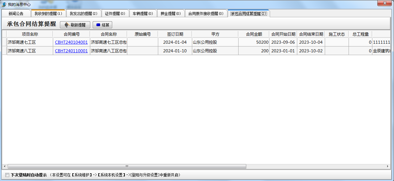 系統新增項目結算提醒功能,可以設置固定提醒人,按照合同約定時間項目到期后,系統自動提醒。