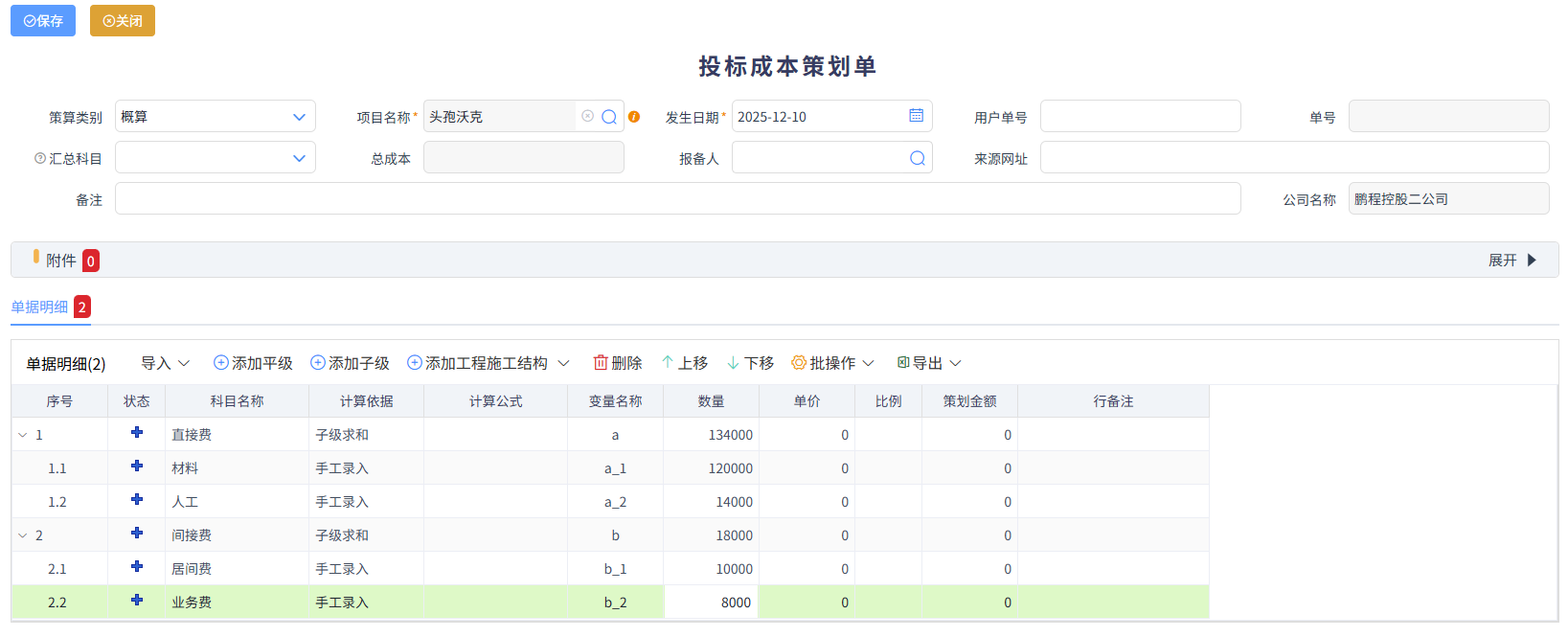 投標策劃分估算和概算兩種。估算沒有可關聯(lián)的項目名稱,即沒有確切的項目名稱,需要手動輸入;概算是可以關聯(lián)投標階段的項目名稱的。如下圖所示
