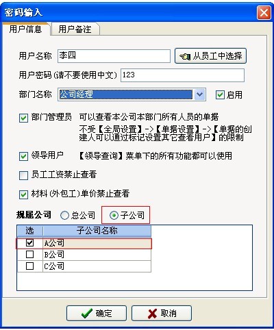 4、子公司用戶(可實現 項目授權、項目與項目之間的單據相互保密)