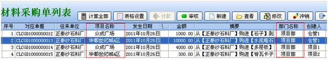 (3)材料采購單、材料銷售單、材料退貨單、外包人工單、外包機械單、運輸車輛單、租賃結算單、其它費用單、設備采購單、設備維修單、設備退貨單、付款申請單、付款單、收款單 (涉及財務的這14個單據) 對于【財務部】也不受該條件限制,可以查看所有部門單據。