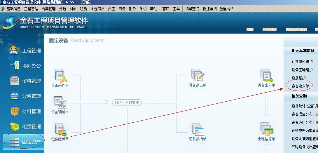 固定設(shè)備、材料庫存的實(shí)際數(shù)量應(yīng)該通過業(yè)務(wù)單據(jù)來錄入。其中固定設(shè)備通過設(shè)備收入單來錄入期初數(shù)量。如下圖: